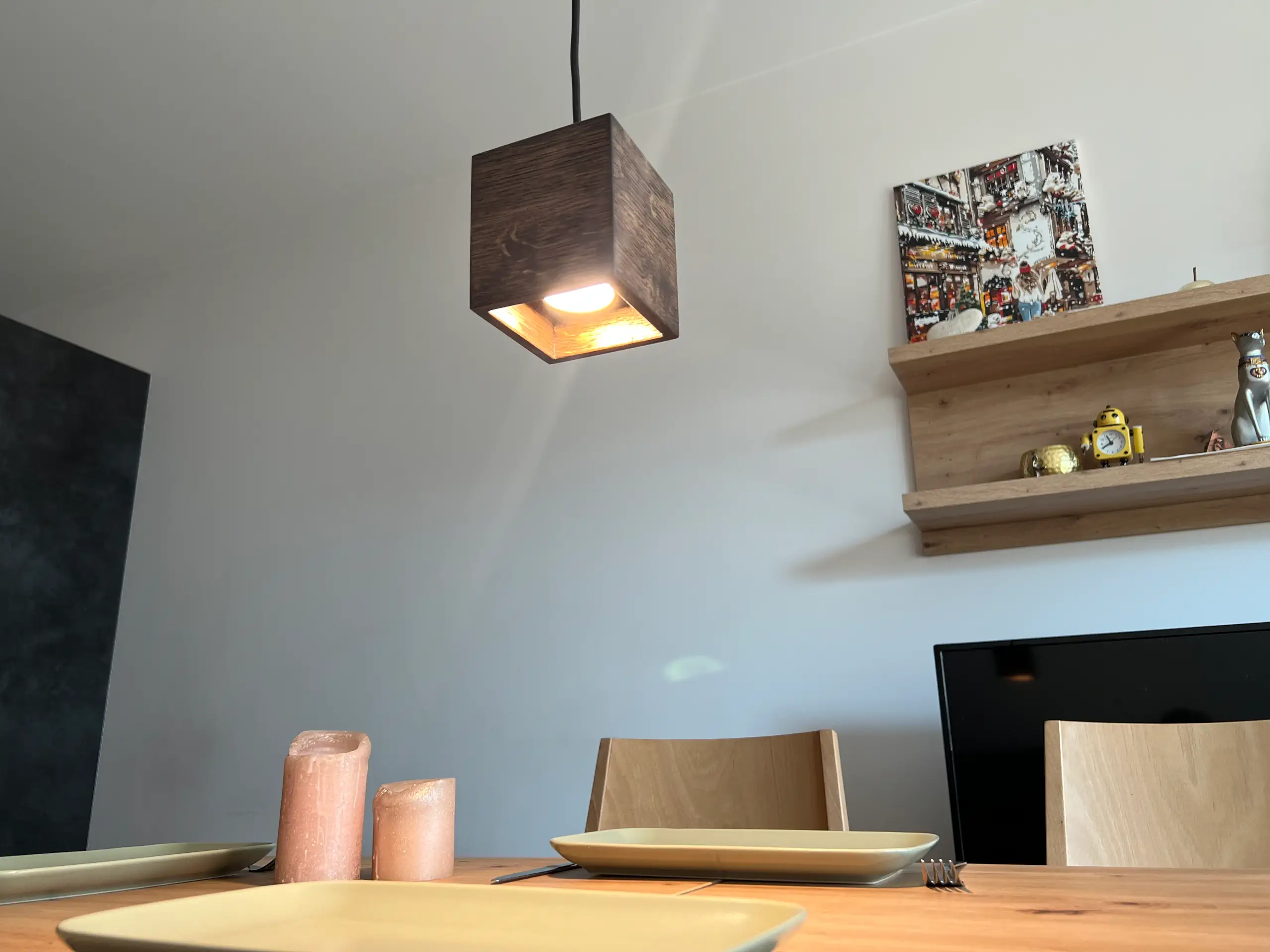- Add a touch of sophistication to any room with the CUBE wooden cube-shaped spot pendant light
