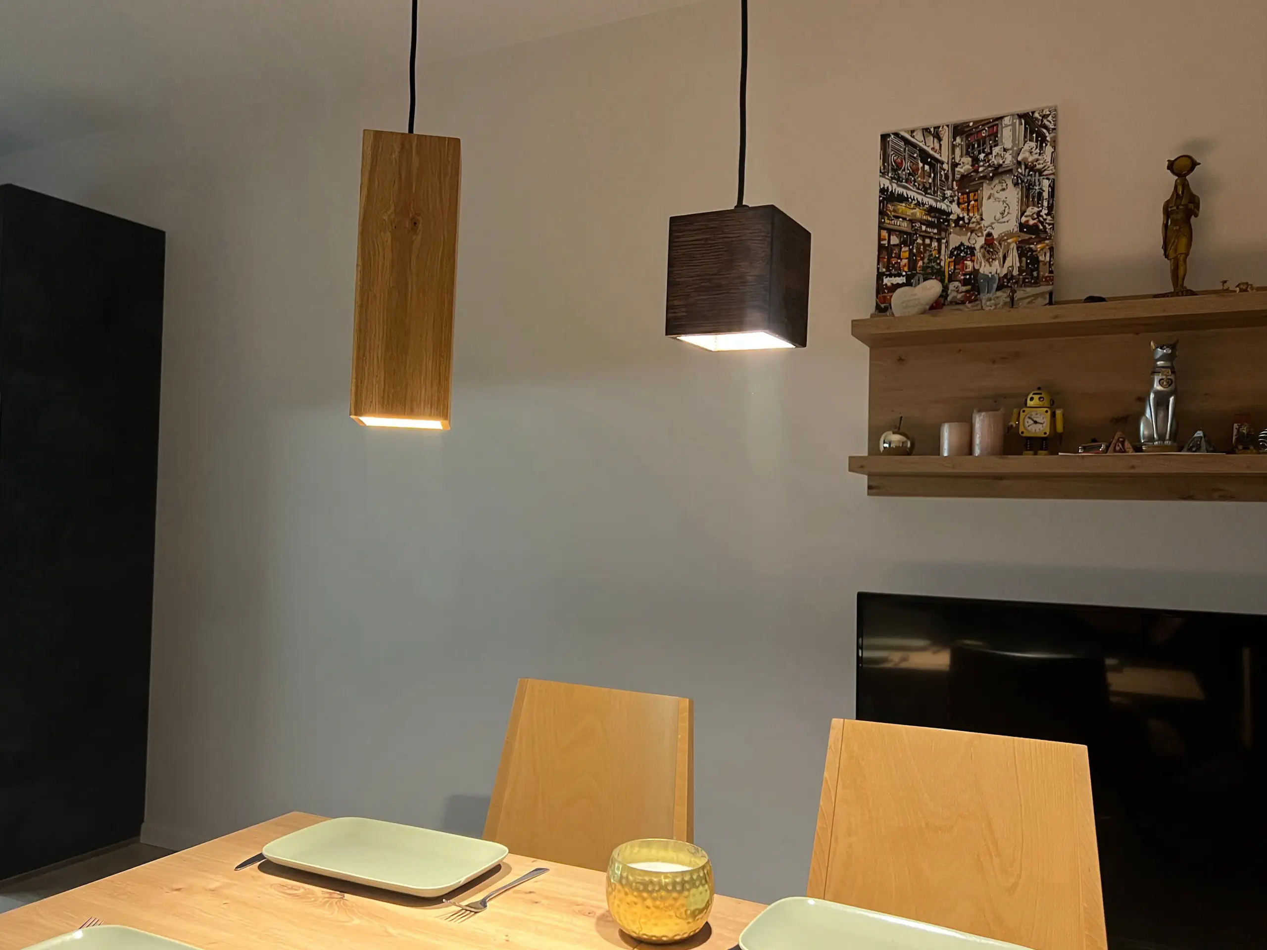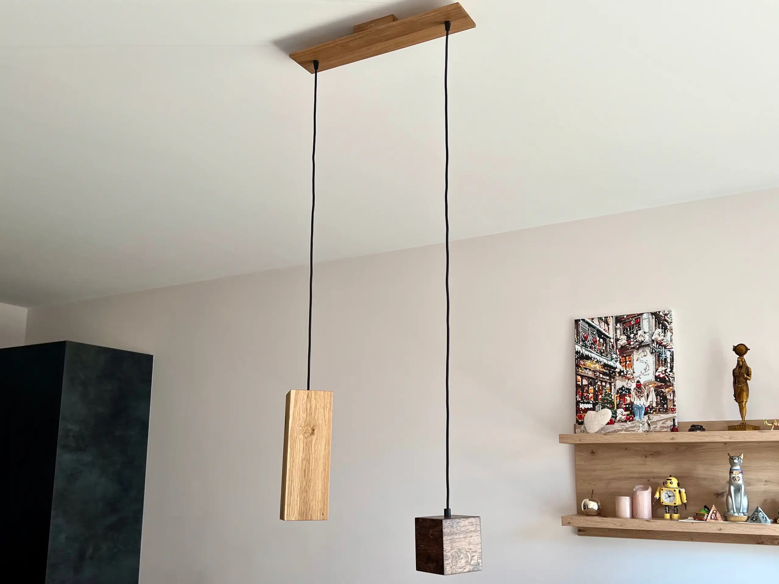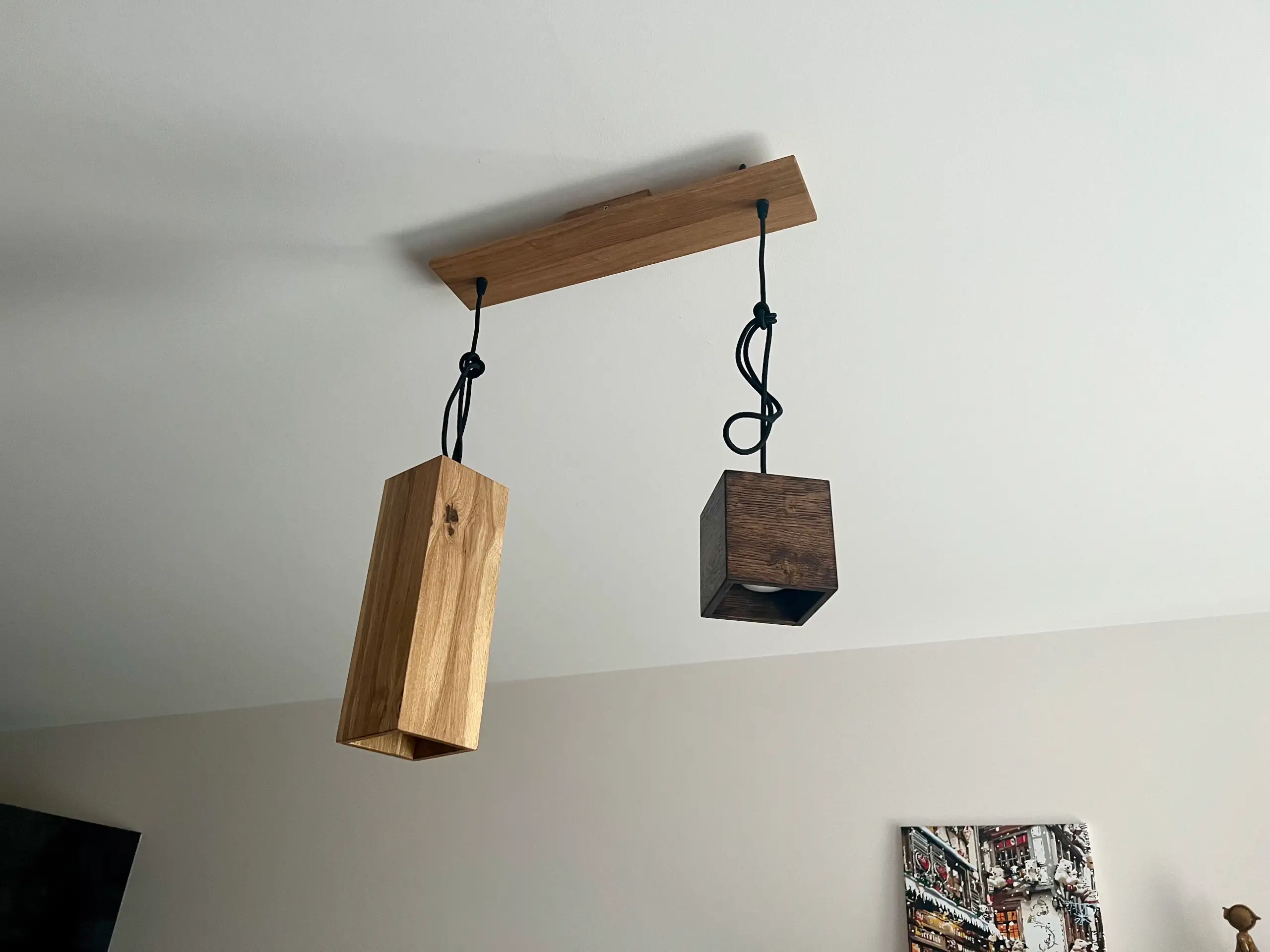 - Add a touch of sophistication to any room with the DUO wooden spot pendant light