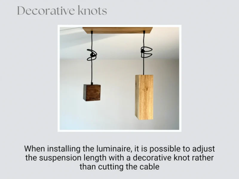 Design 1 and design 2 are ideal for lighting a dining table or bar counter. Design 3 is suitable for softly lighting a living room, giving a cozy warm light. If you choose design 1 or design 2, you can always turn them into design 3 with decorative knots.