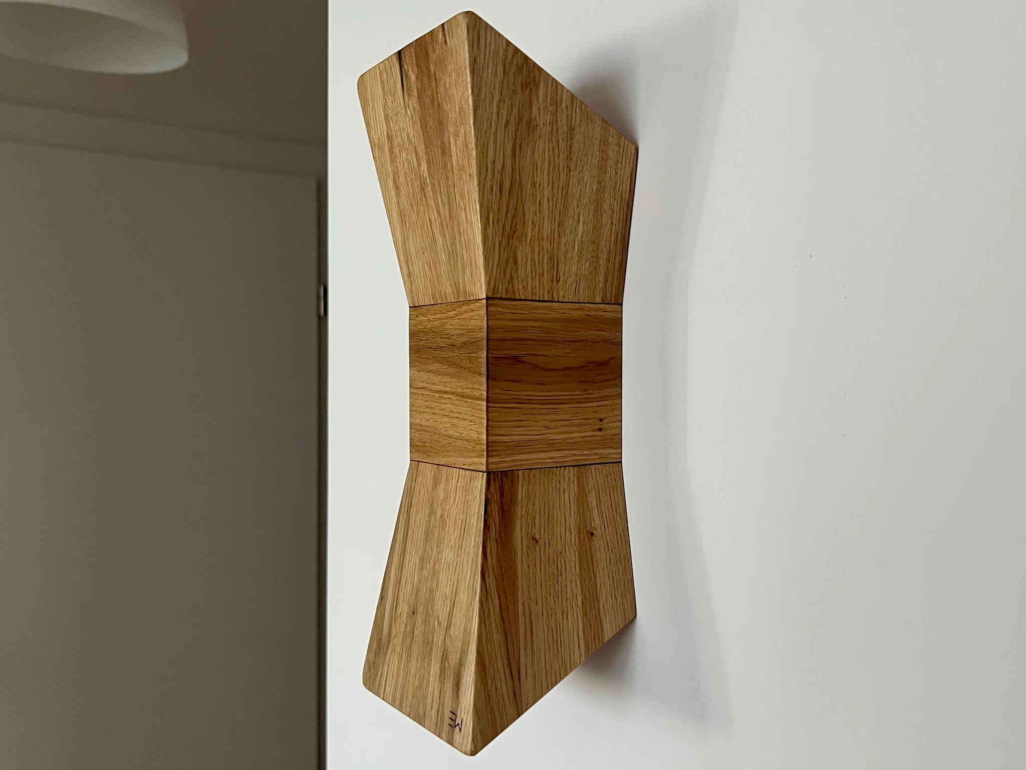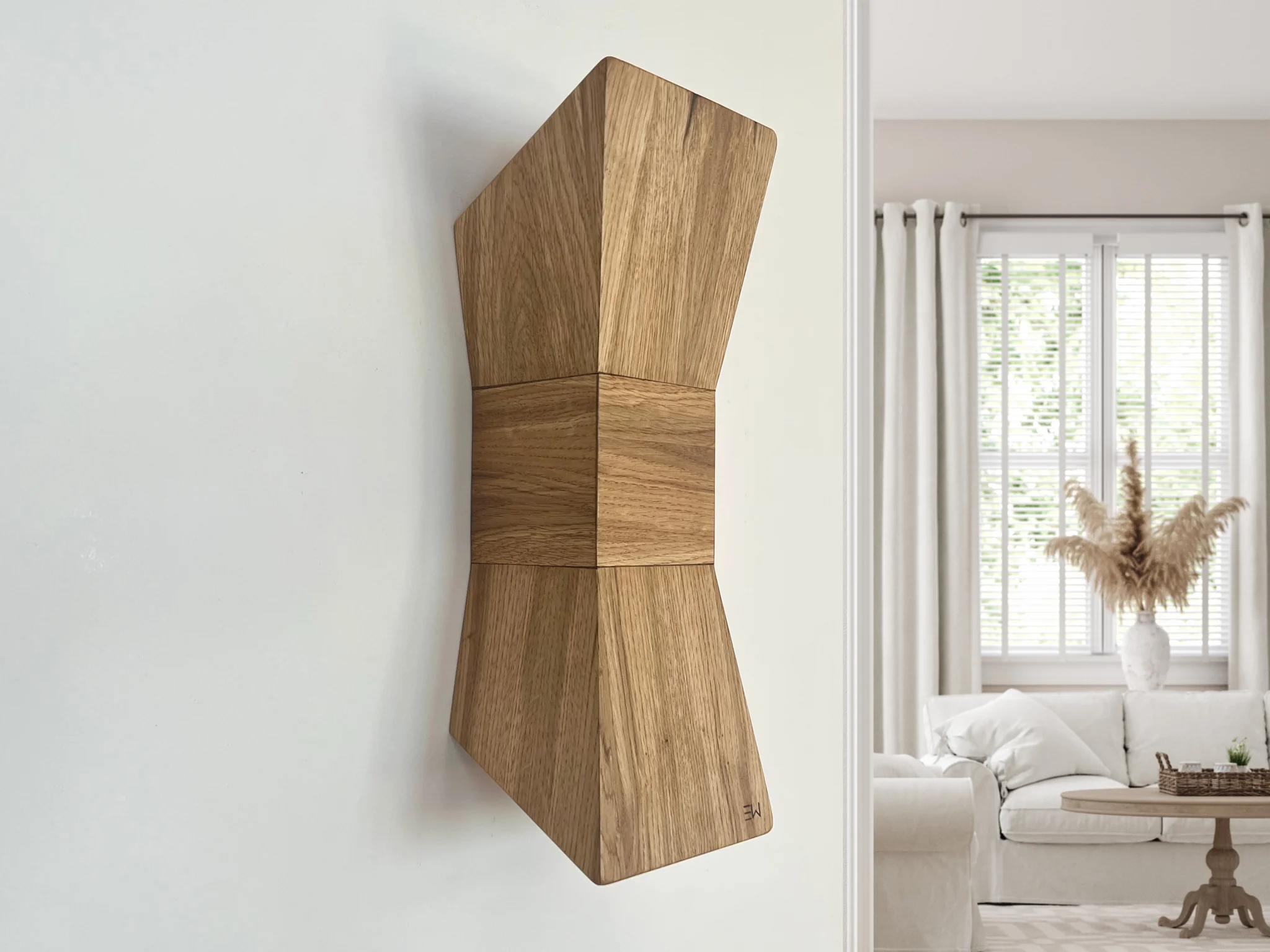 The GENTLEMAN wooden wall lamp is a unique and stylish lighting solution for any space. Made from natural oak wood, this elegant lamp features a classic gentleman’s butterfly design and two GU10 LED bulbs for a warm and inviting glow.